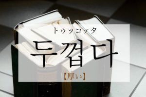 韓国語で두껍다(トゥッコプタ)とはどんな意味なのでしょうか? 例文・活用などを元に一緒に覚えていきましょう! 韓国語で두껍다(トゥッコプタ)とは?発音は? 韓国語で두껍다(トゥッコプタ)とは『 […]