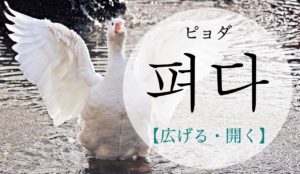 韓国語で펴다(ピョダ)とはどんな意味なのでしょうか? 例文などを元に一緒に覚えていきましょう! 韓国語で펴다(ピョダ)とは? 韓国語で펴다(ピョダ)とは『開く・伸ばす・広げる』のことです。 & […]