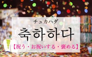 韓国語で「祝う・お祝いする・褒める」の【축하하다(チュカハダ)】の例文・活用や発音は?