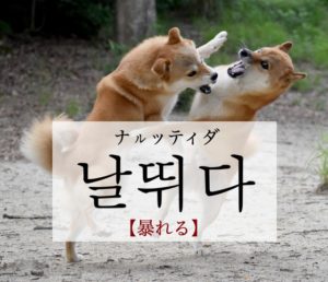 韓国語で날뛰다(ナルッティダ)とはどんな意味なのでしょうか? 例文などを元に一緒に覚えていきましょう! 韓国語で날뛰다(ナルッティダ)とは? 韓国語で날뛰다(ナルッティダ)とは『暴れる』のこと […]