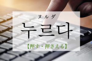 韓国語で누르다(ヌルダ)とはどんな意味なのでしょうか? 例文などを元に一緒に覚えていきましょう! 韓国語で누르다(ヌルダ)とは? 韓国語で누르다(ヌルダ)とは『押す・押さえる』のことです。 & […]